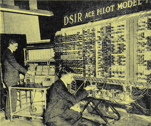یکی از نخستین کامپیوتر های جهان. ايده ی آقای جان وامر-اسلِی یعنی موتور محاسبه اتوماتيک (Automatic Computing Engin - ACE)، که وی در سال 1936 داده بود، برای اولين بار و موقفيت آمیز در دهم ماه مِی 1950بر روی کامپيوتری که آلن تورینگ عمليات ساخت آنرا انجام داد، آزمايش شد. اين کامپیوتر در زمان خود پیشرفته ترين و سريعترين کامپیوتر در جهان بود که نمونه ی کوچکتری از مدل اوليه ی آلن تورینگ بود. پايلوت اِیس هم در لیست مهمترين اختراعات بشر است، چرا که اولین نسل از کامپیوترهایی است که امروز ما را احاطه کرده اند.